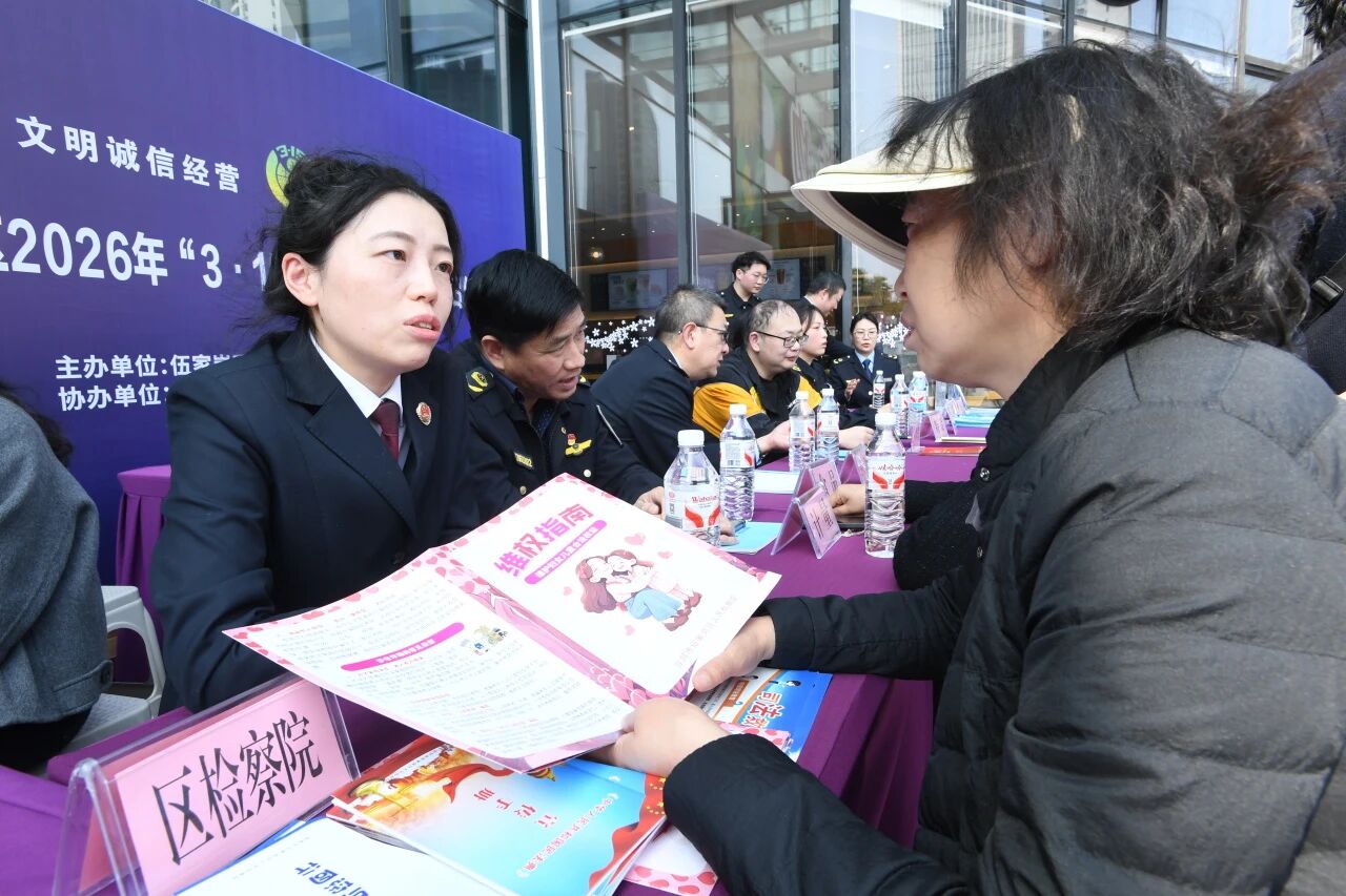 3月15日国际消费者权益日当天,宜昌市伍家岗区检察院干警走进辖区繁华商圈,开展“筑牢反诈防线 守护财产安全”主题普法活动。干警们通过设立咨询台、悬挂宣传横幅、发放反诈手册等形式,面对面为群众讲解电信网络诈骗、养老诈骗、刷单返利等常见诈骗手段的识别技巧和防范方法。针对投资理财骗局、冒充公检法、虚假购物等群众易受骗的情形,干警结合真实案例进行深入剖析,提醒大家“不轻信、不转账、不透露”。
