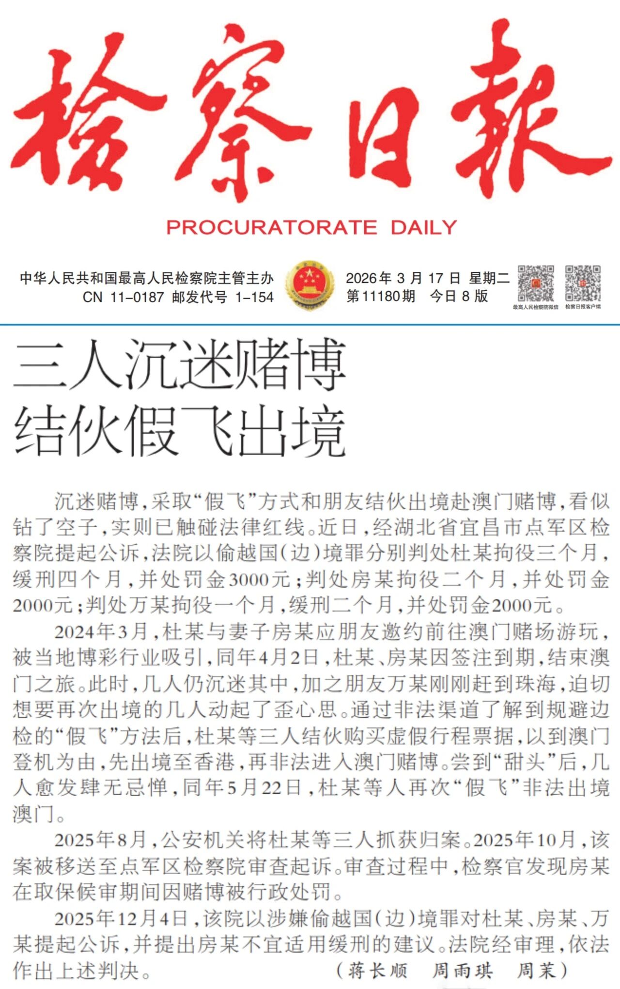 检察日报丨三人沉迷赌博,结伙假飞出境